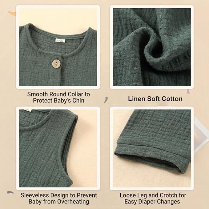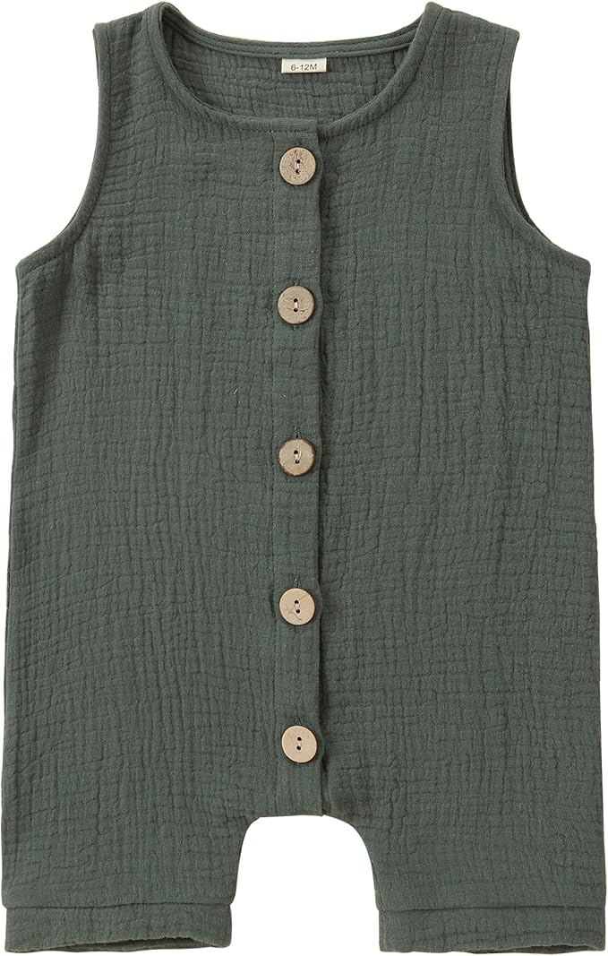 MICHLEY Baby Sleeveless Summer Cotton Romper Unisex Toddler Jumpsuit (Green)