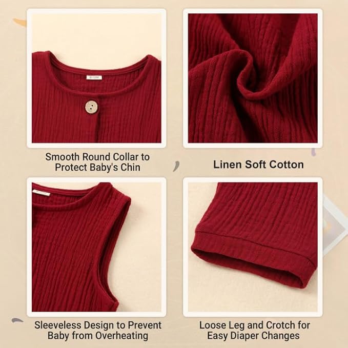 MICHLEY Baby Sleeveless Summer Cotton Romper Unisex Toddler Jumpsuit (Red)