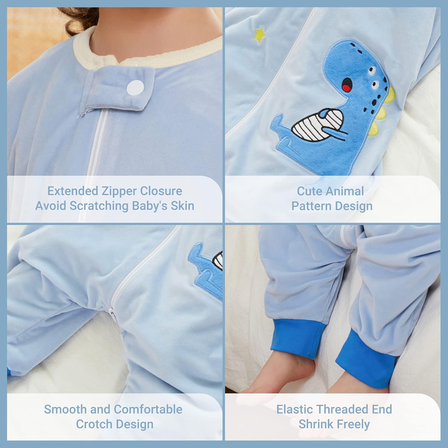 - Smooth 2-Way Safety Zipper: Equipped with a durable 2-way zipper for lightning-fast diaper changes. Includes a protective fabric tab at the chin to prevent scratches and ensure a smooth, safe fit.
