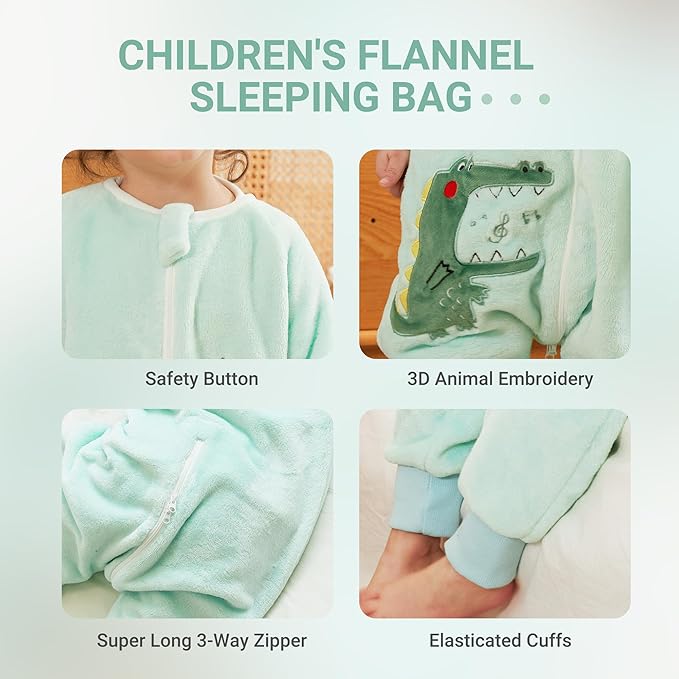 MICHLEY Kids Crocodile Sleeping Bag – Flannel Wearable Pajamas