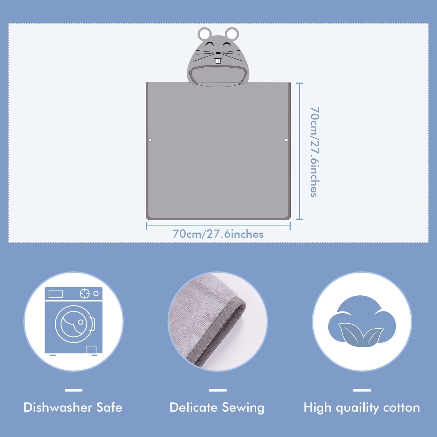 Make a splash and stay cozy with the MICHLEY Grey Mouse Bath Poncho. This adorable overhead towel cape features a character hood with oversized round ears and sweet embroidered details. Crafted from 100% premium cotton towel fabric, it’s the ultimate beach and pool companion. The generous 27.5" x 27.5" size provides a warm, private cocoon for your child to dry off and change, while the playful mouse design ensures they look "squeaky clean" and cute!