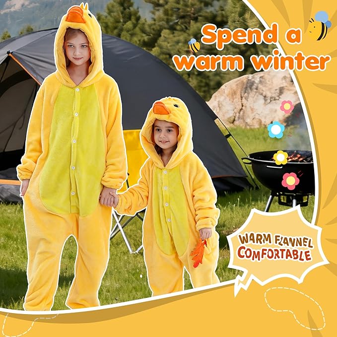 Bring a splash of sunshine to even the coldest winter days with the MICHLEY Yellow Duck Hooded Romper. This ultra-soft flannel onesie features a bright, cheerful yellow body and a character hood complete with a soft 3D orange duck bill and sweet embroidered eyes. Designed for kids aged 3-12 Years, it’s the perfect blend of a snuggly winter pajama and a standout animal costume for Halloween or themed school events.