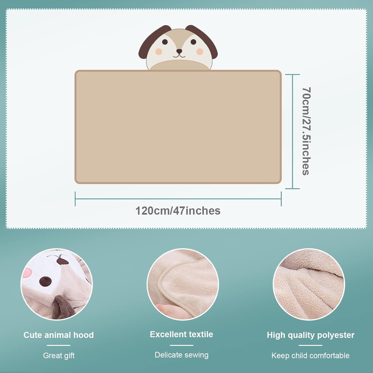MICHLEY Light Brown Dog Hooded Baby Towel Soft Cotton Swim Robe 31.5"x53"