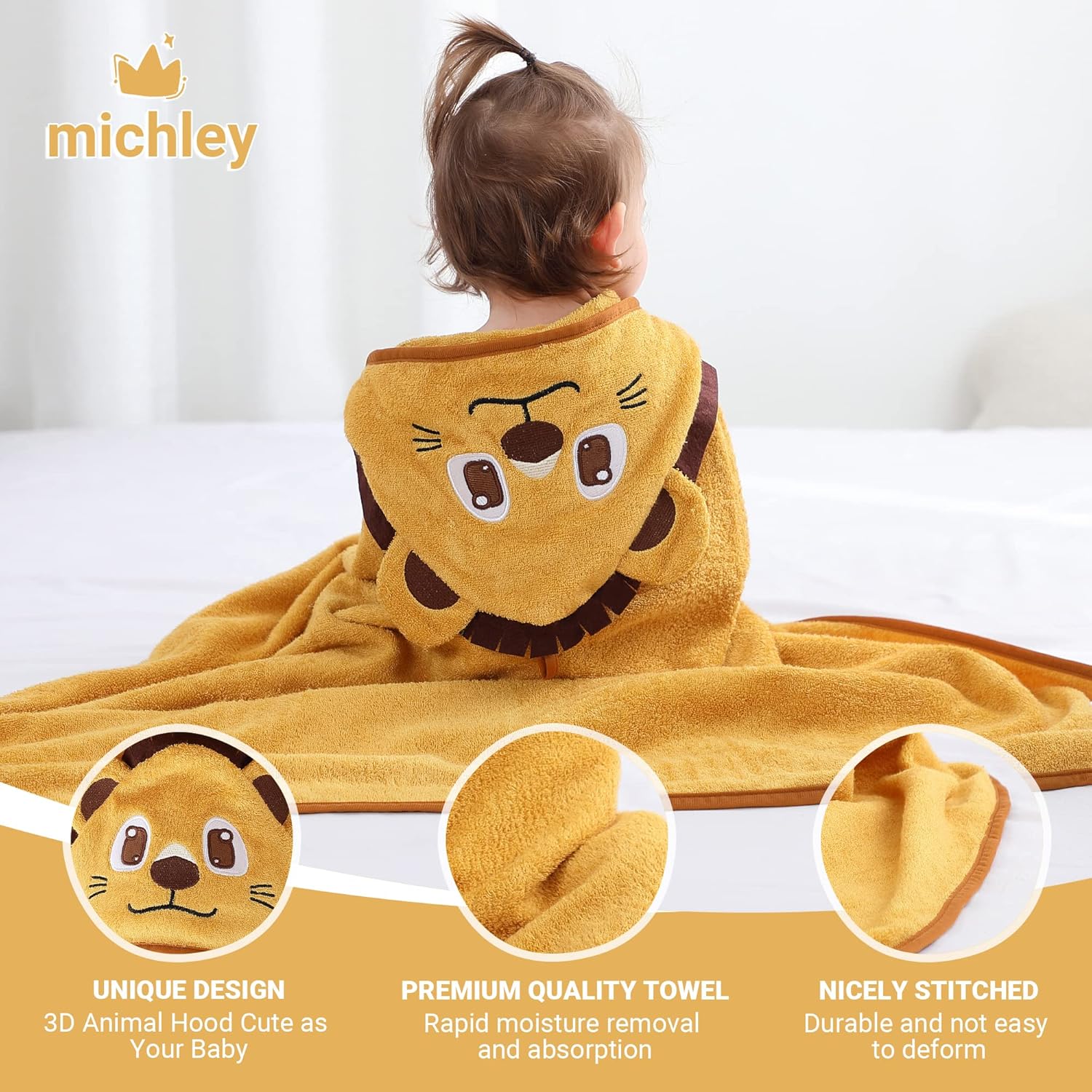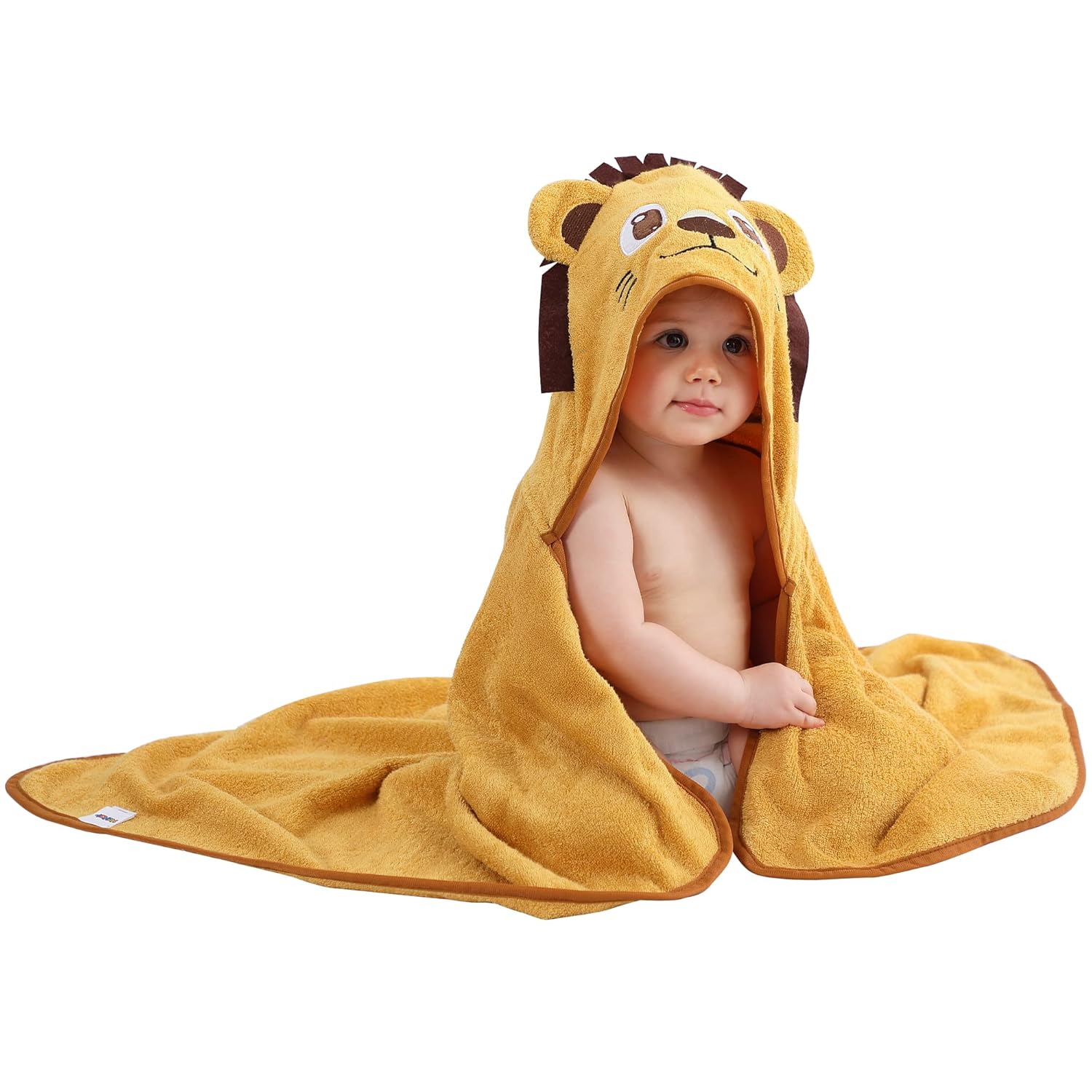 MICHLEY Lion Bamboo Viscose Baby Hooded Towel Ultra-Soft