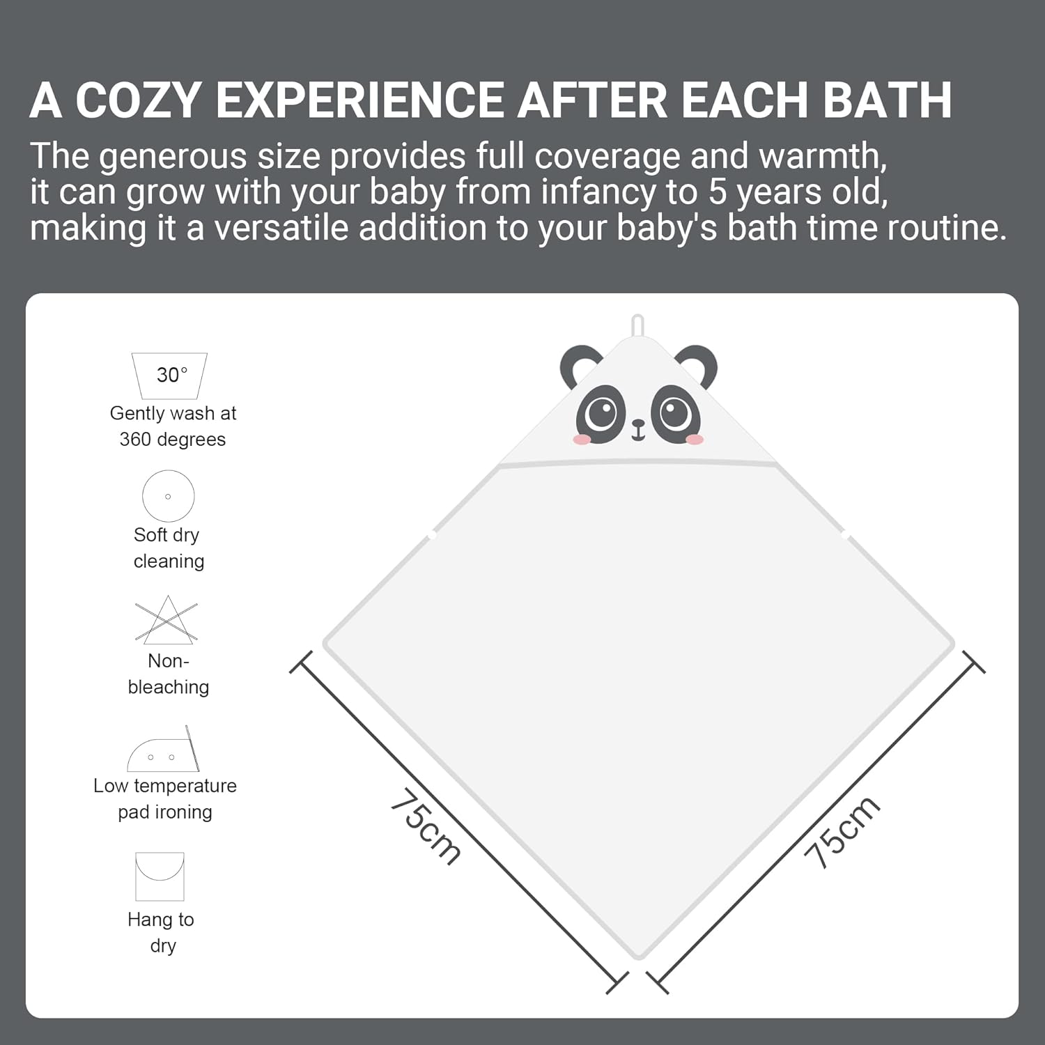 - Charming 3D Panda Details: The hood features plush 3D ears and high-quality embroidery that stays cute wash after wash. The classic black-and-white design is timeless and matches any nursery decor.