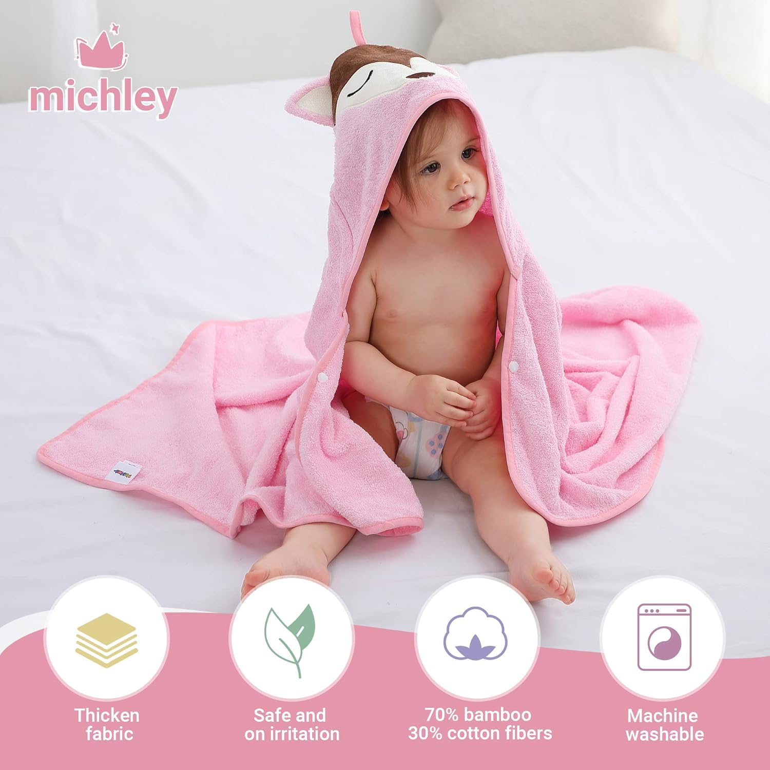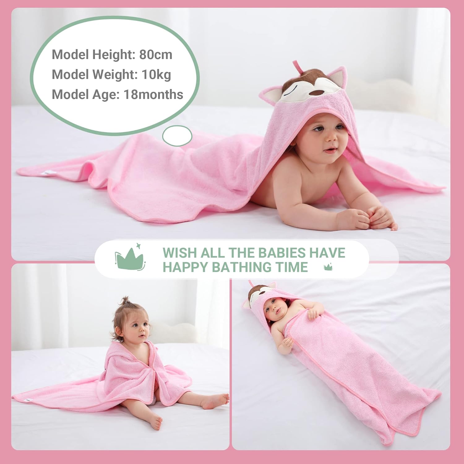 MICHLEY Pink Fox Bamboo Viscose Baby Hooded Towel Ultra-Soft
