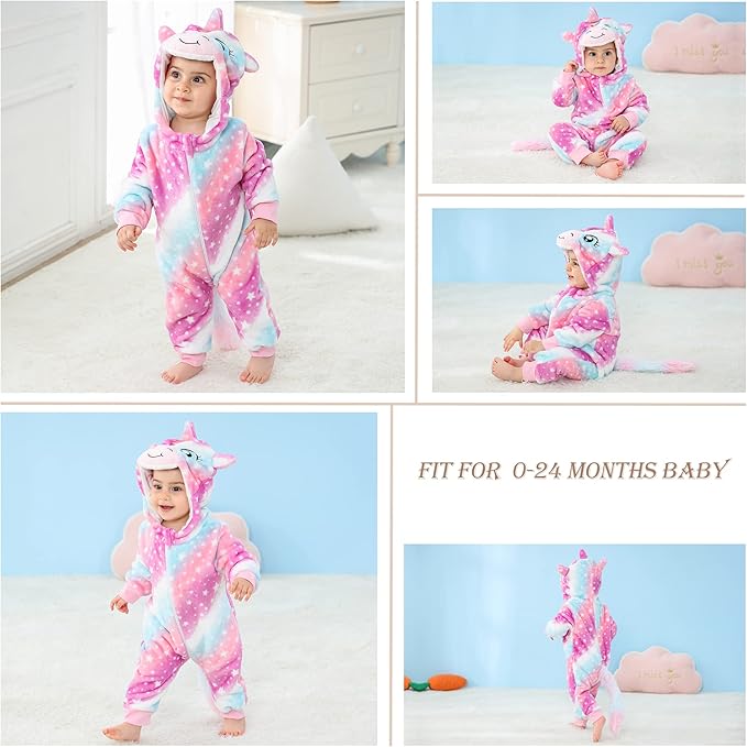 MICHLEY Starry Unicorn Baby Costume Winter Flannel Hooded Romper